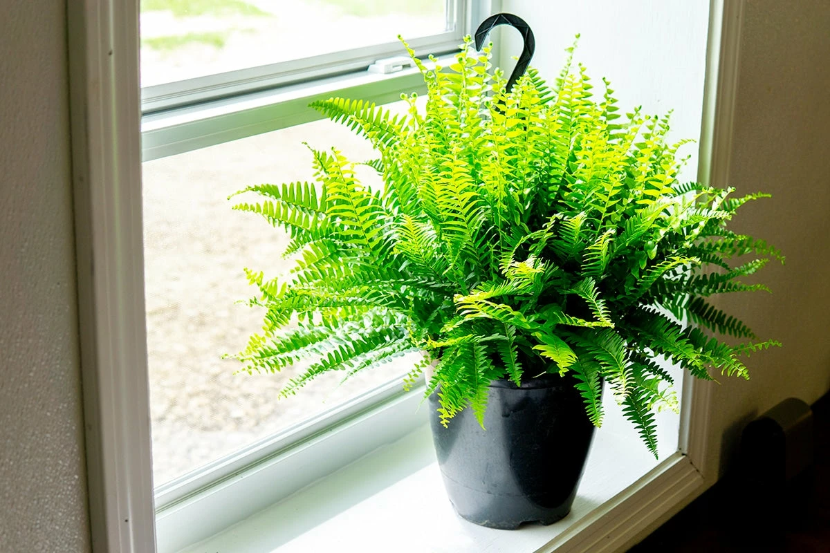 The Boston Fern’s light conditions should be bright and indirect sunlight. If growing outdoors, provide ample shade and low light. Too much sun can cause the browning of the fronds.