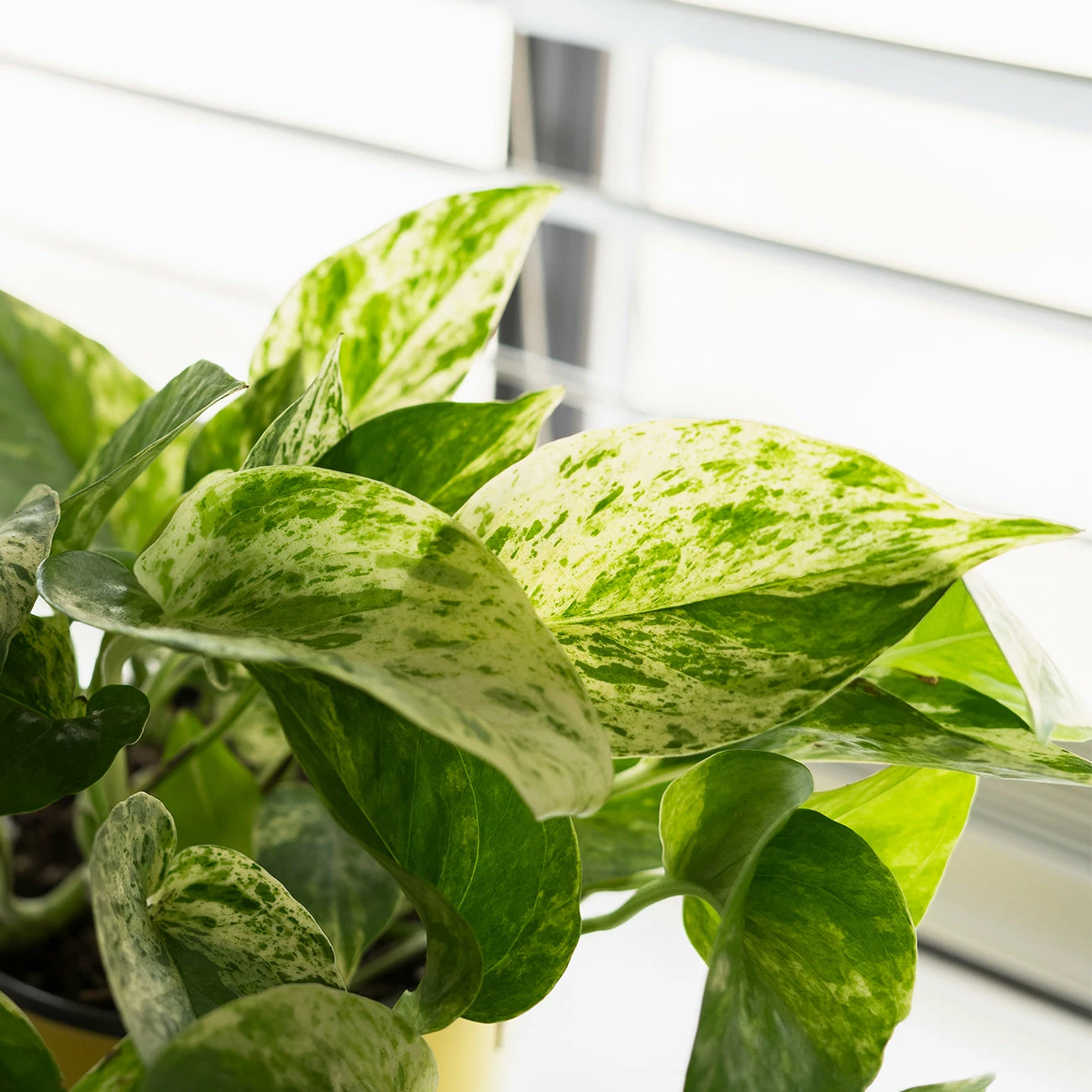 Marble Queen Pothos vines are best grown with bright indirect light and moist, well-draining soil. It can tolerate low light conditions but provide at least 4 hours of natural light. Water the Marble Queen Pothos Vine when the top 3-4 inches of the soil is dry. These drought-resistant plants can tolerate light watering conditions, and the pothos leaves will droop when they are ready for thorough watering. A symptom of overwatering is when the Marble Queen Pothos Plants have yellowing leaves.