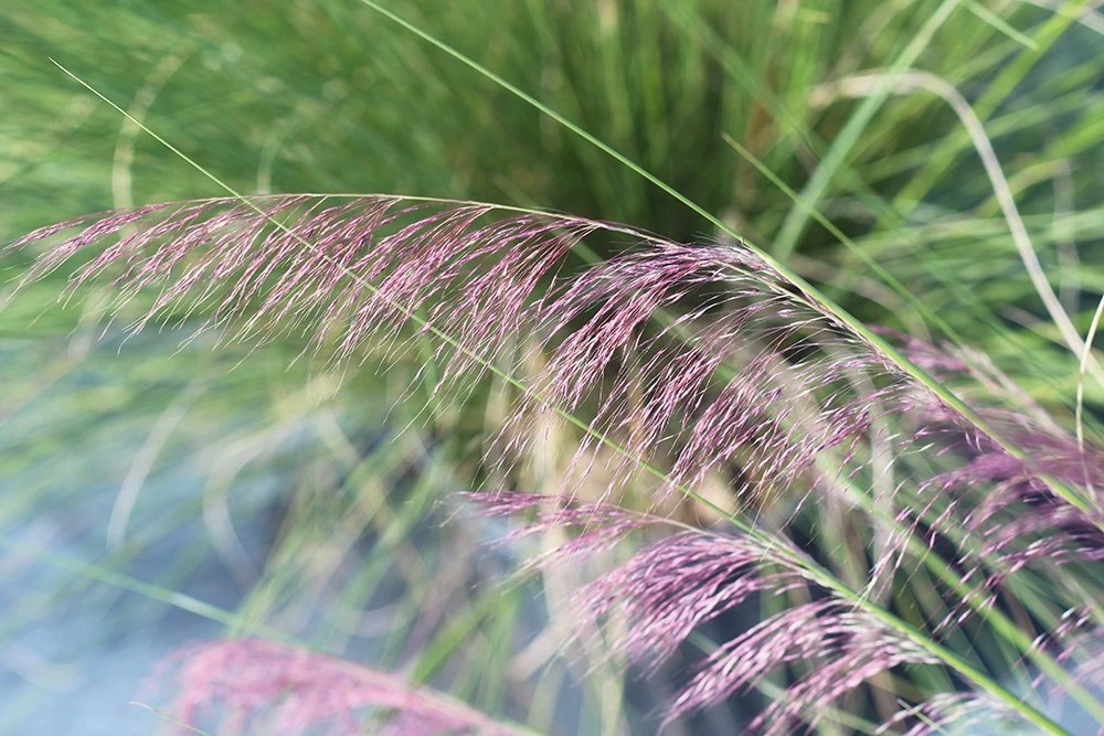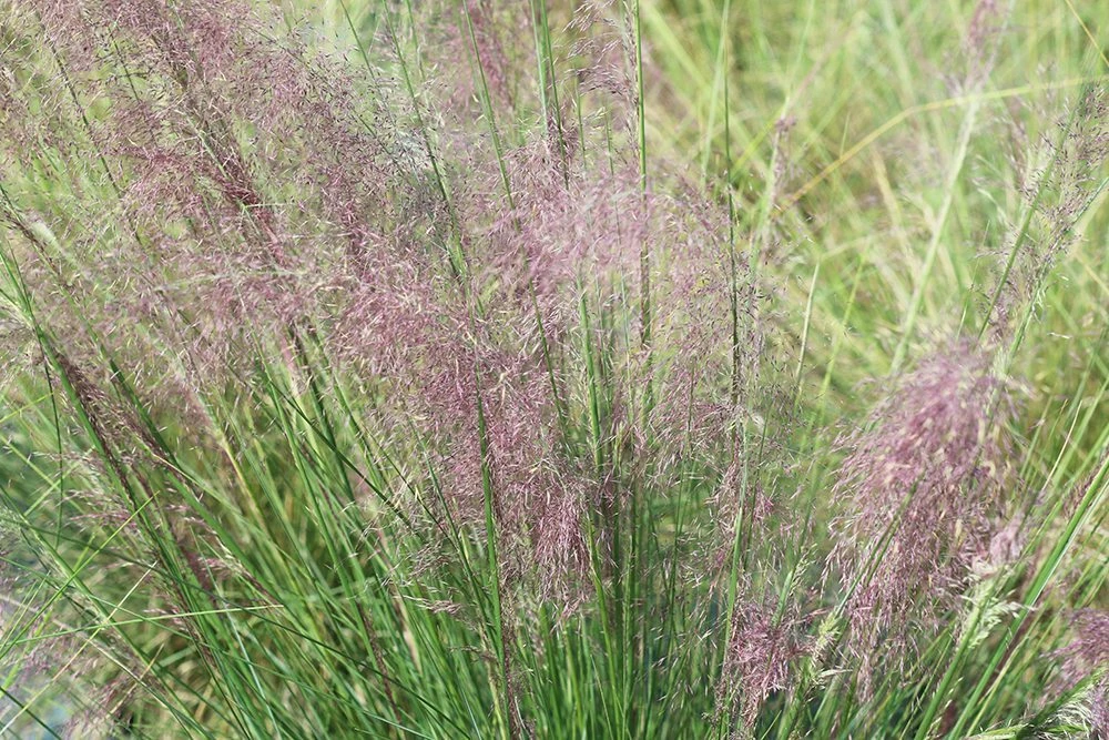 Masses of airy, open, loosely branched blooms (each to 12 inches long) in purple-red to pink colors hang above the dark green foliage in lengthy fall bloom. Some may say it looks like cotton candy pink grass giving it the nickname ofĀ cotton candy grass! Tan seed head plumes continue to thrive all through winter on this grass.