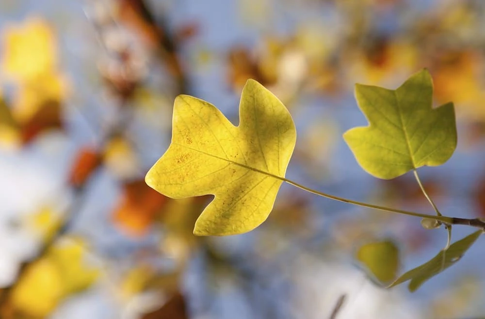 The yellow tulip tree also features fantastic yellow color. The bright green leaves turn golden yellow for great fall color before falling to the ground as all deciduous trees do. The Tulip Poplar tree is a favorite wildlife system for beavers and porcupines who frequently nest near these trees or use the wood to build beaver dams.