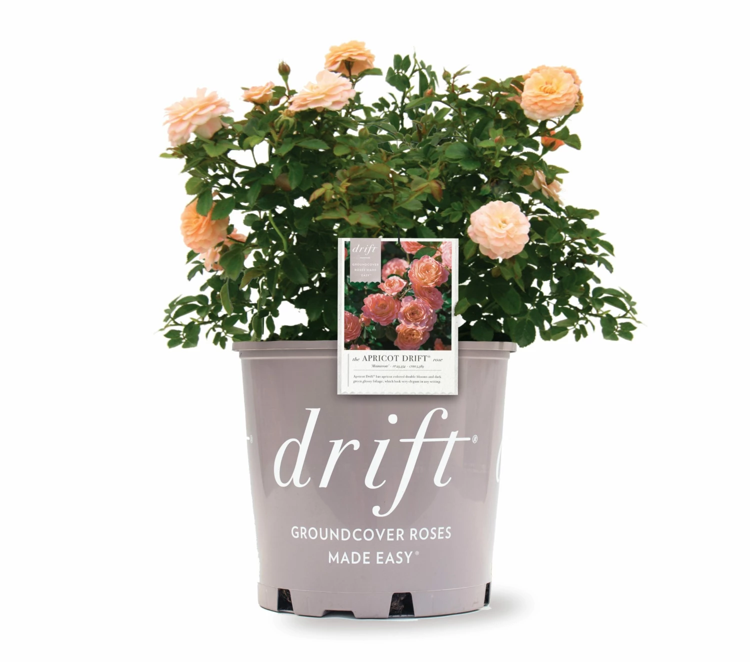 This Drift series of roses are tough and disease resistant. Applying a slow-release fertilizer in early spring will help these shrub roses flourish during the growing season. Deadheading spent flower blossoms will encourage more flowering. Double apricot-colored flowers begin blooming in spring and if placed in full sun will rebloom again and again.