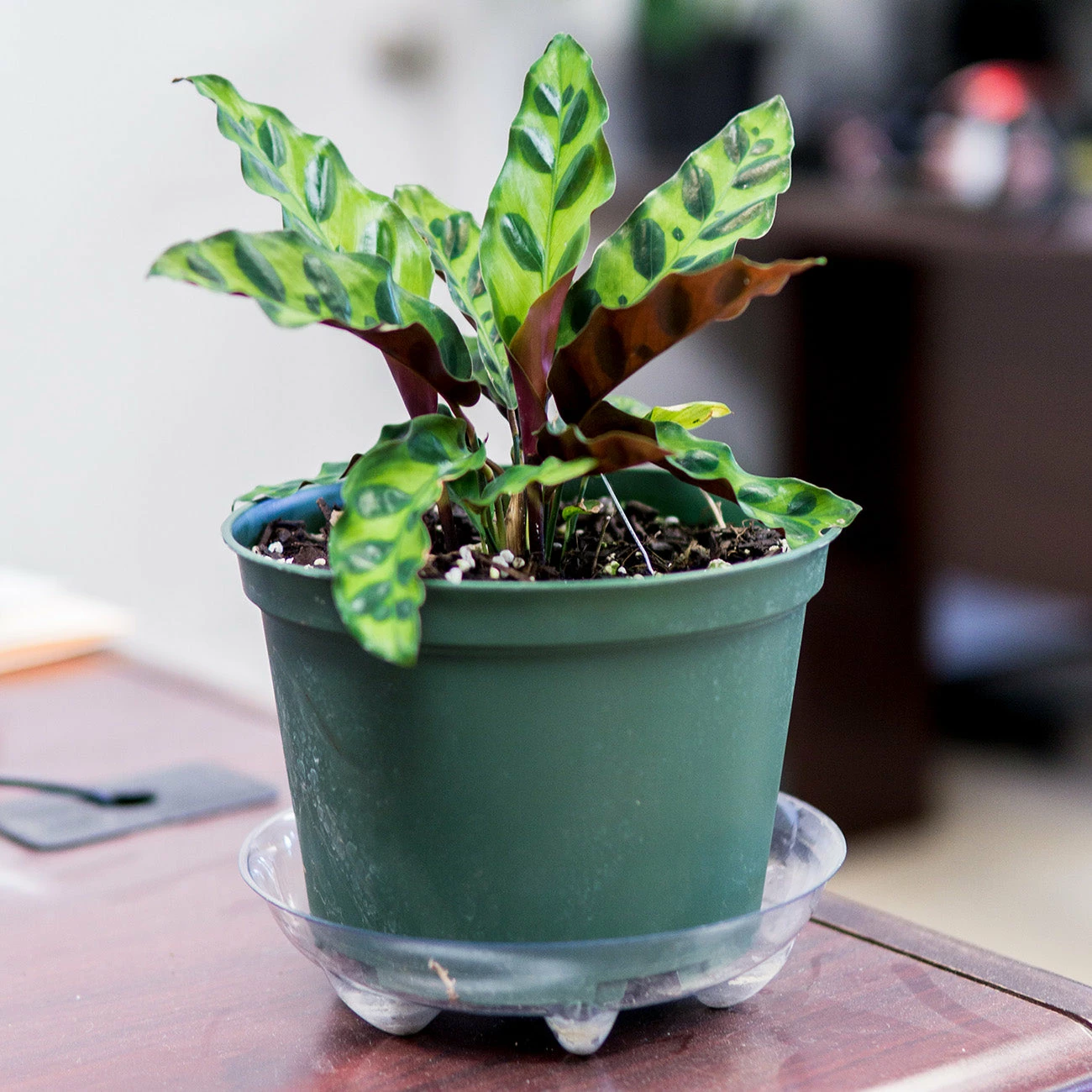 Keep the Rattlesnake Calathea in any room of the house that shows a bit of filtered light. It looks great cared for in offices, bedrooms, bathrooms, or living rooms and will add a touch of green decor that your home needs!