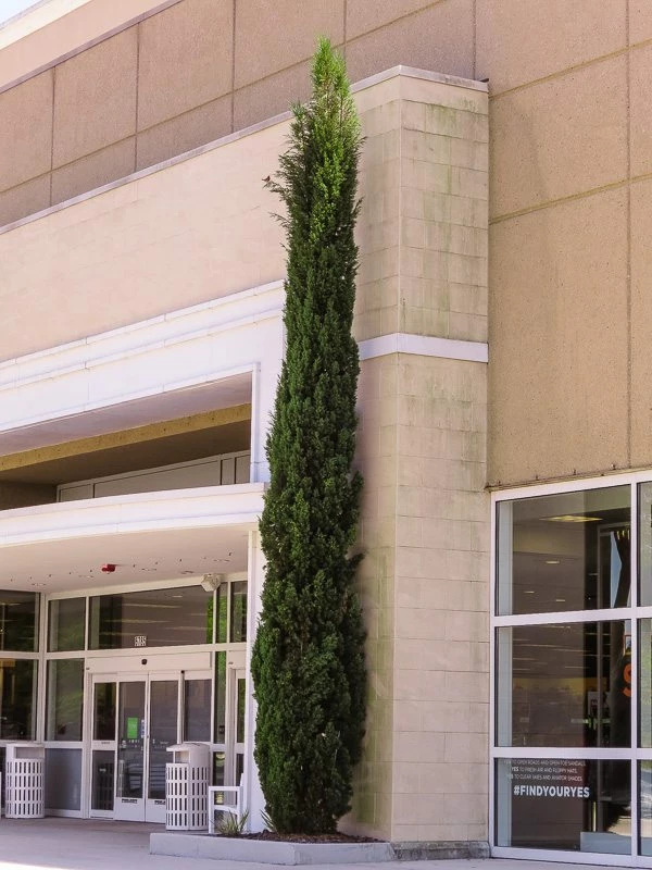 At times the tall height of this tree can be challenging to fit within residential landscapes. The Italian Cypress tree is best suited for framing, as a strong accent around large buildings, or informal landscape. It is a great choice for a wind blocking tree and is long living!