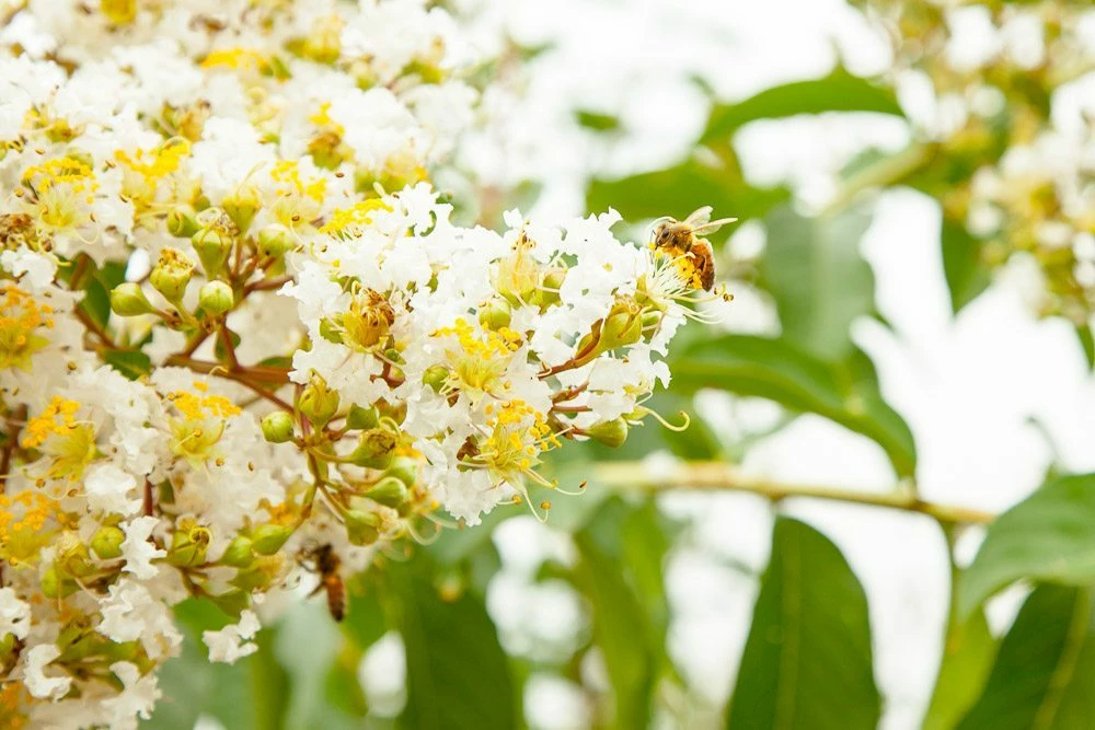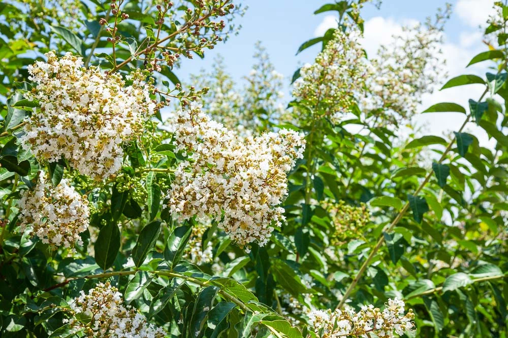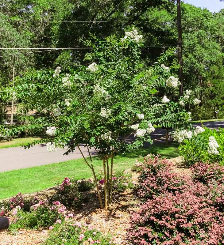 The fast growing Lagerstroemia indica tree makes an excellent specimen tree, accent, or group planting. The white blooms will enchant anyone during the spring and summer growing season.