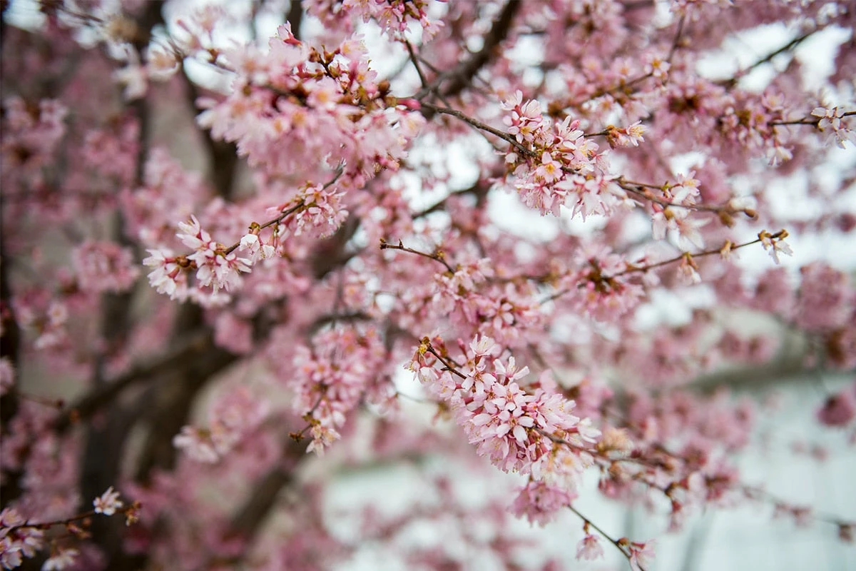 Okame Cherries flower color is a vibrant pink with white undertones and is mildly fragrant. The flowers will appear while the fast growing tree is still bare without leaves. Once spring hits and the weather warms up the tree will flush out with dark green foliage to contrast the end of their bloom period. The flowering cherry tree does have an exceptionally long bloom time from late winter until the end of spring.