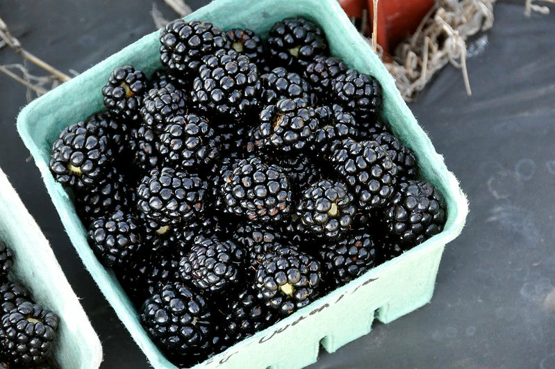 The Ouachita Blackberry vine is self-pollinating and prefers full sun and loamy, well-drained soil. Its fruit is deliciously large, sweet berries with black skin, and a firm texture. It requires around 400 chill hours.