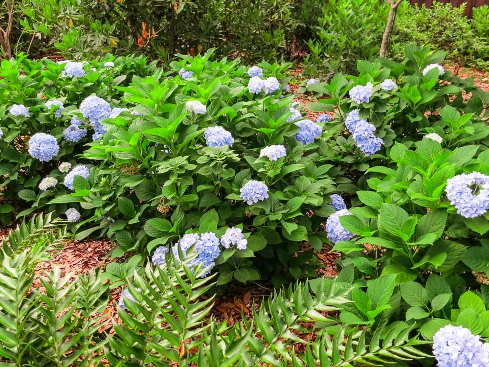 This acid loving plant is the perfect shrub for dappled shade in your backyard. The flower color can be changed by adding pH-changing substances to the soil. To make the large flowers have blue blooms add aluminum sulfate to their soil. To see more pink flower buds add dolomite lime to the soil.