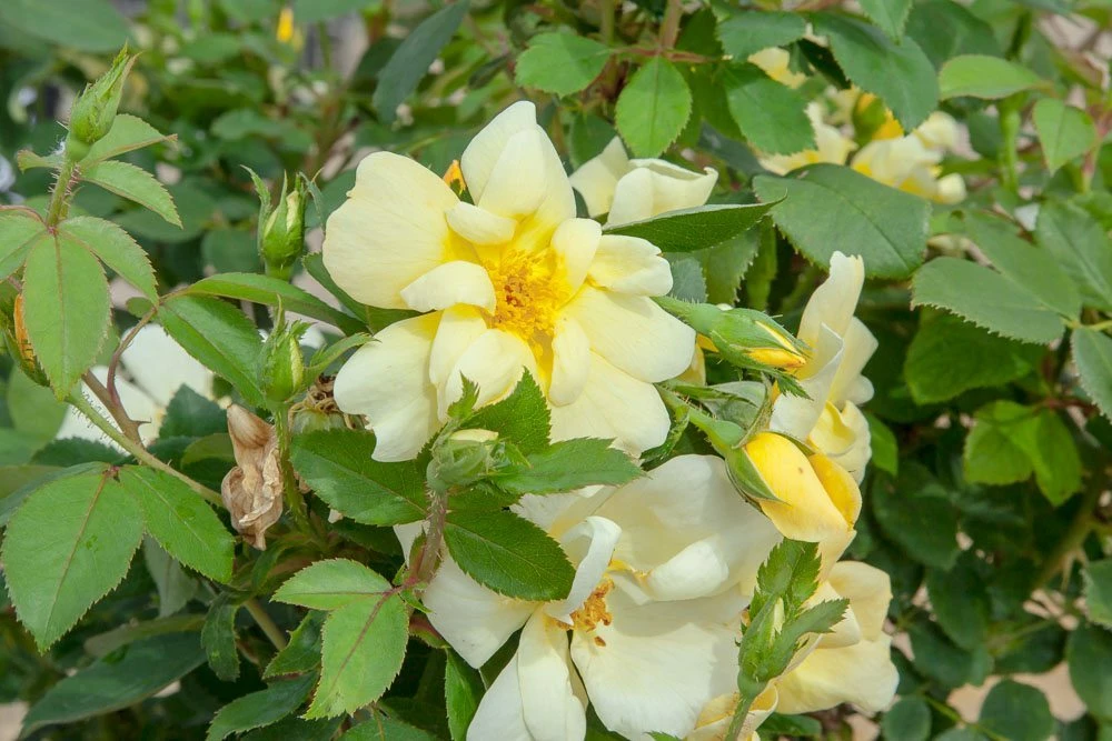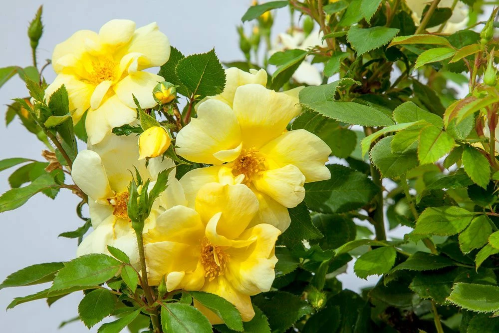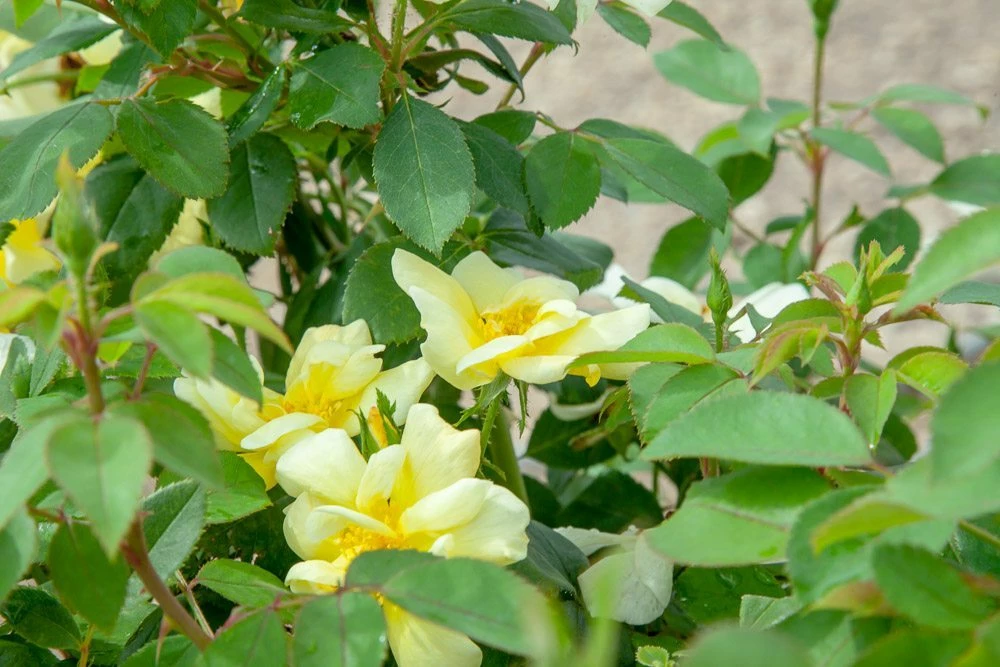 This beautiful rose bush makes for a superb low hedge. The dark green, semi-glossy foliage contrasts nicely with the bright yellow blooms, and you can enjoy this deciduous bloom cycle all summer long.