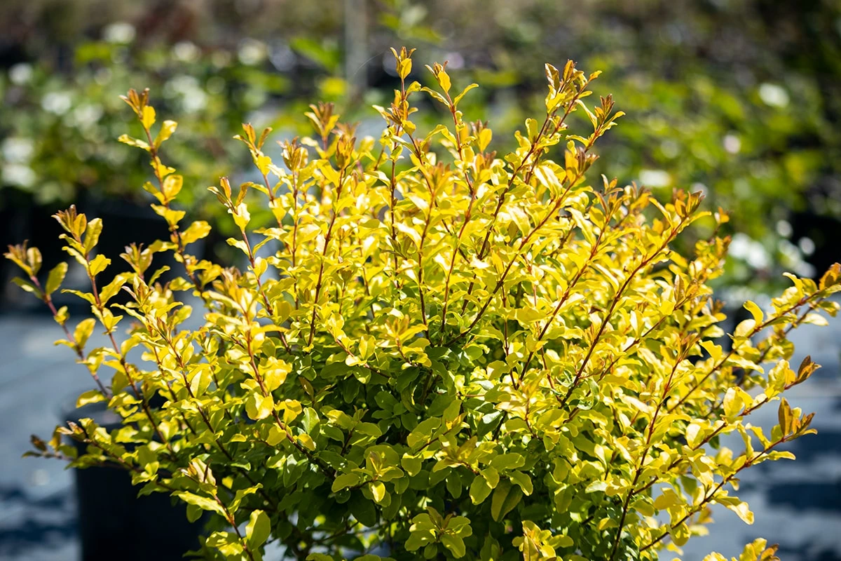 An evergreen bush with year round interest featuring golden foliage that changes color hues on its yellow leaves throughout the heat of the summer. The Sunshine ligustrum dwarf plant is a sterile, non-invasive cultivar that will not re-seed into the landscape. In fact, it doesn’t bloom at all which is good news for allergy sufferers.