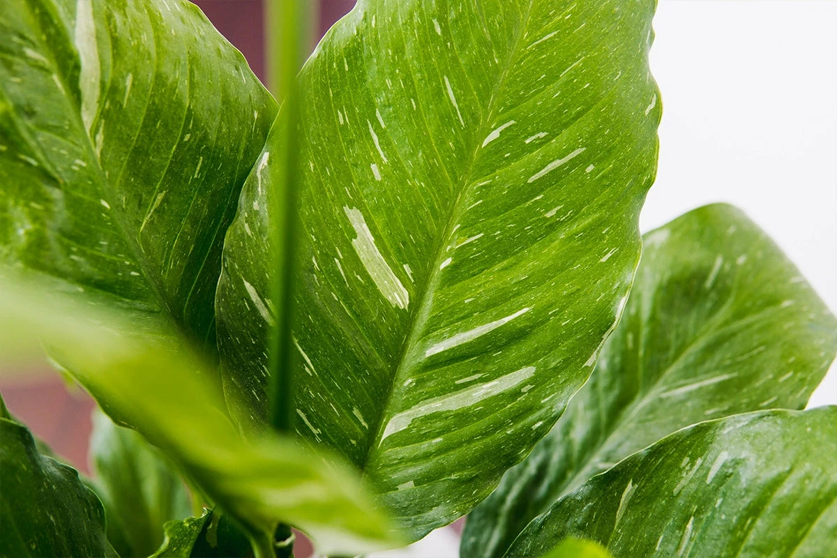 Peace lily plants prefer bright, indirect light conditions for best results. The more light the plant receives, the more variegation will show, and the more it will bloom. Be sure not to expose it to direct sunlight as this can burn or scorch the green leaves and they will turn yellow and eventually brown.