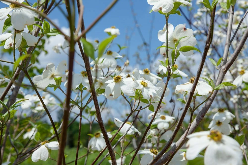 The White Dogwood tree will bloom in early spring and has an overlapping flower bloom period with the redbud trees. Plant our White flowering Dogwood Tree at ground level to accentuate any landscape with its dark green leaves and beautiful white blossoms.