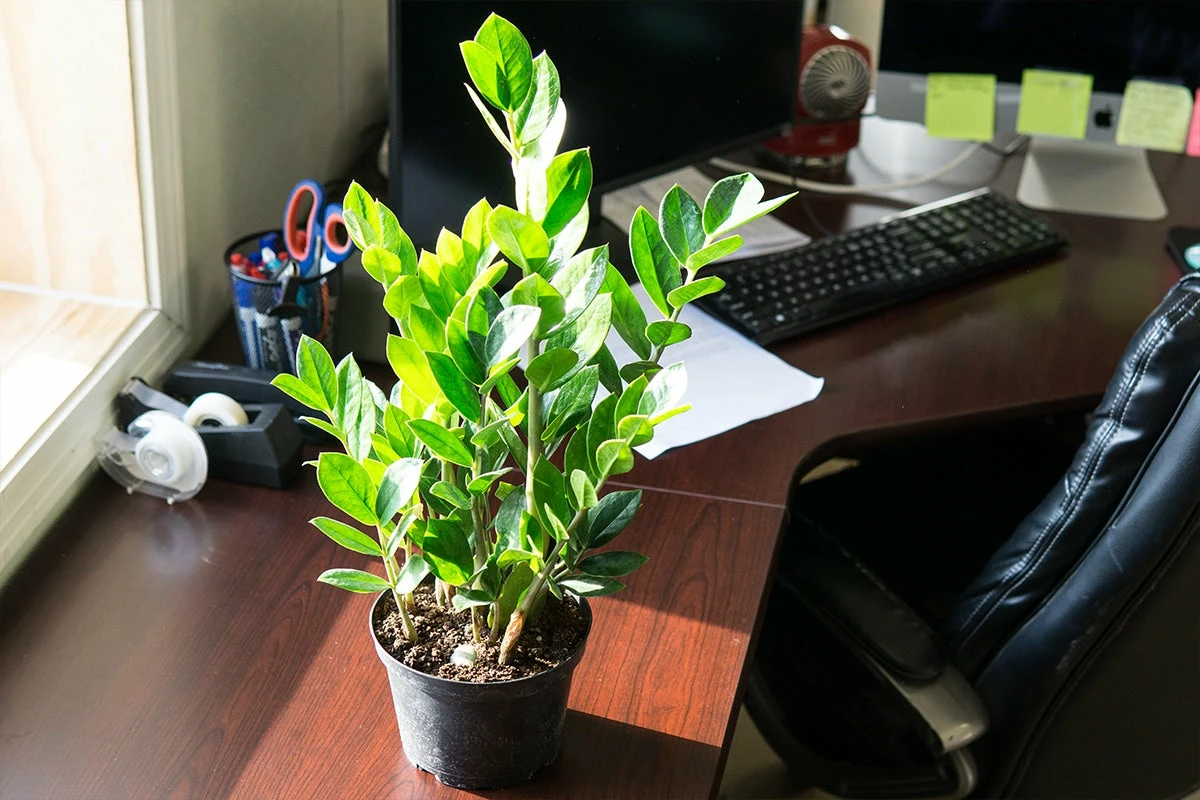 ZZ houseplant has been shown to reduce toxicity indoors and purify the air. There are many other ZZ Plant benefits including lower blood pressure, reduced stress, and boosting productivity.